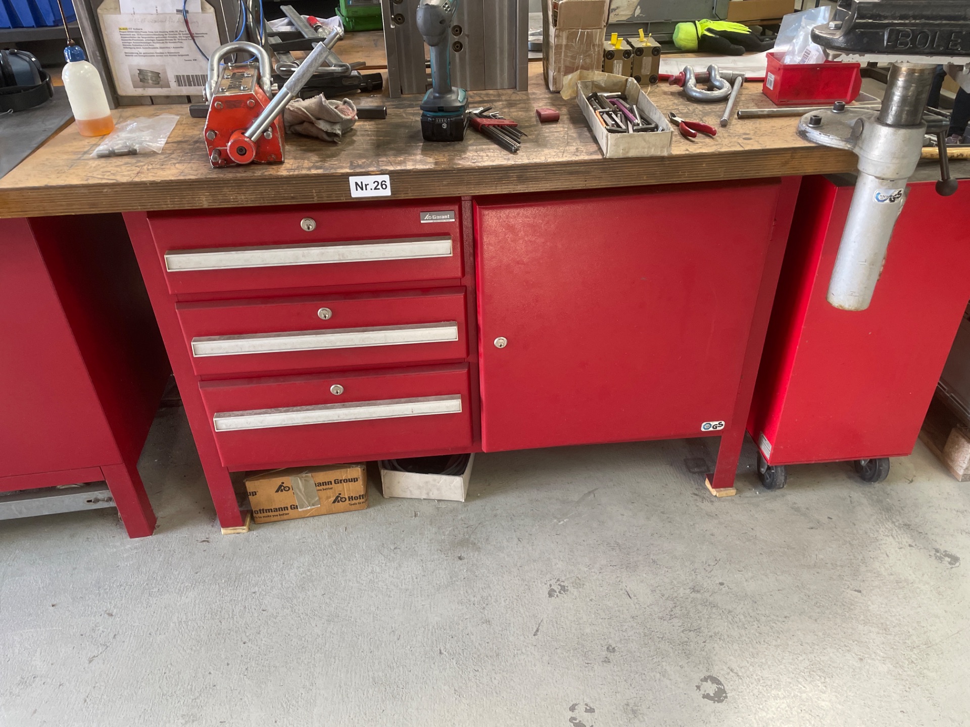 Verkauft wird nur die Werkbank, ohne Zubehör und Inhalt!